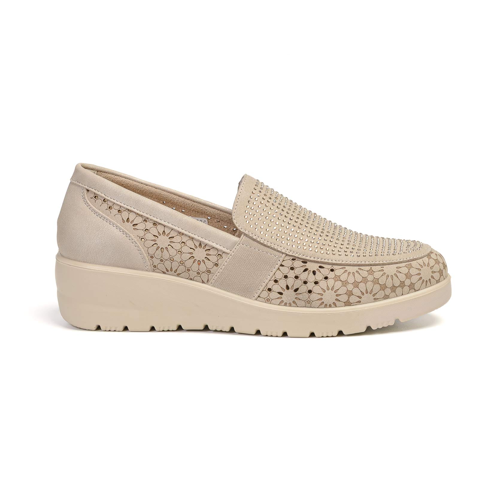 El zapato de mujer de estilo topolino es aquel que se fabrica con un tacón en forma de cuña en una solo pieza.